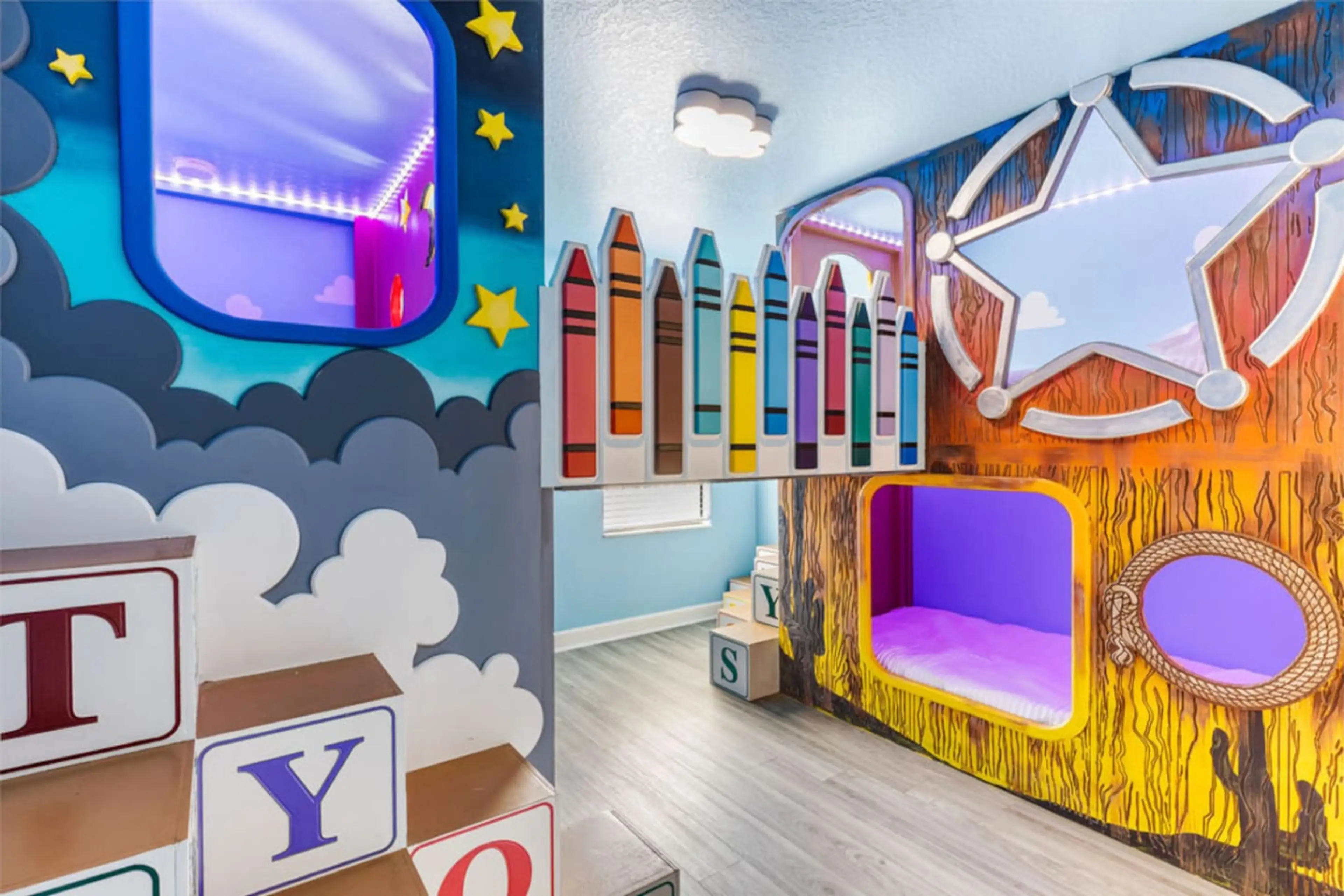 9BR Captain Sparrow’s Hideaway w/ Pool near Disney Set sail on adventure at this spectacular 9-bedroom themed villa inspired by the spirit of Captain Sparrow! Discover rooms designed around your favorite Disney worlds — from princesses and superheroes to The Incredibles and creative Crayola vibes. E...