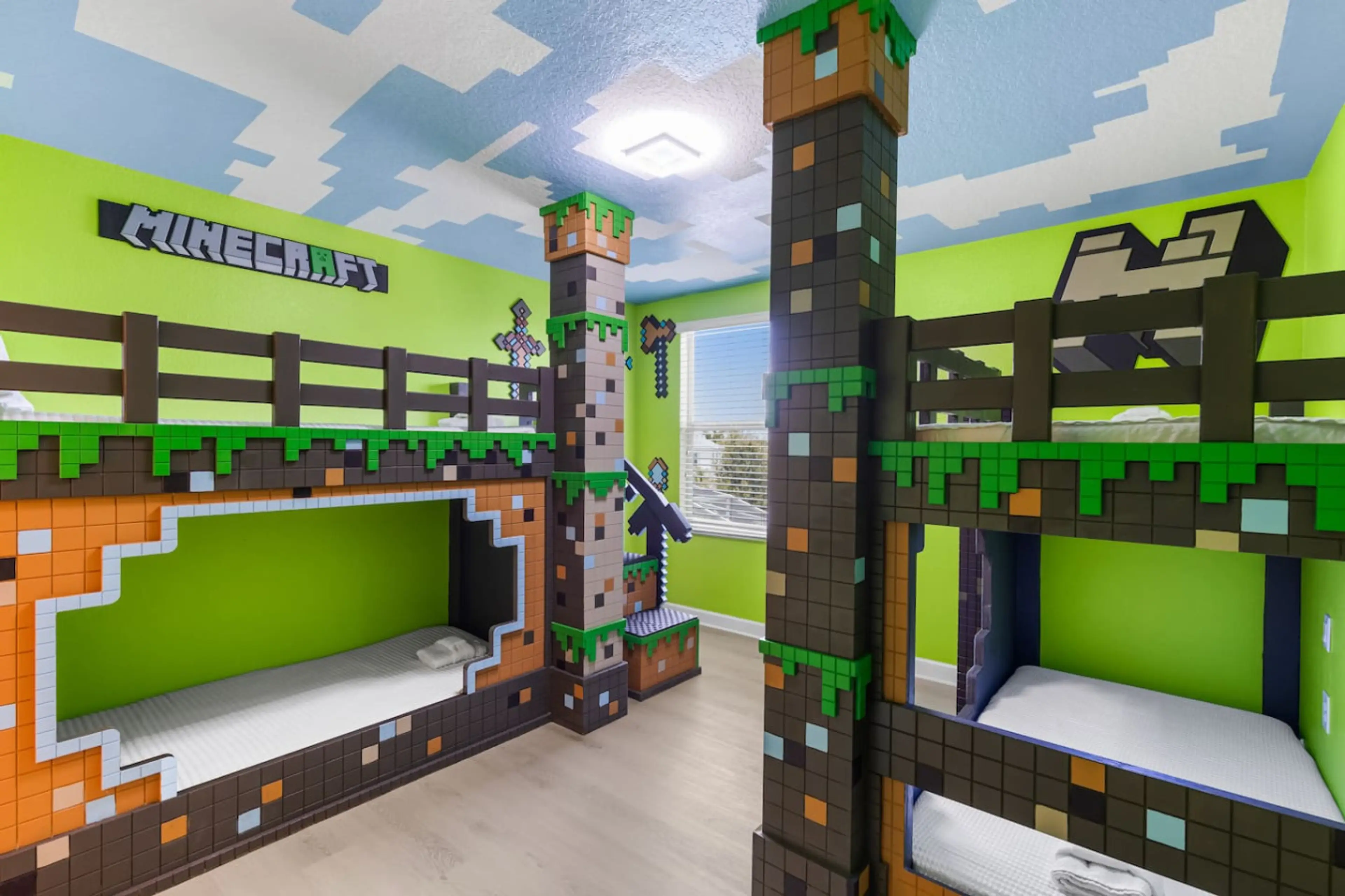 Enjoy the extra space in this nine bedroom Orlando resort vacation home that sleeps 23 people, and features FIVE king beds, private pool & spa (pool/spa heating extra fee), classic games arcade, and themed rooms for the kids including a Super Mario, Minecraft, Avengers and Disney Princess rooms! Enj...