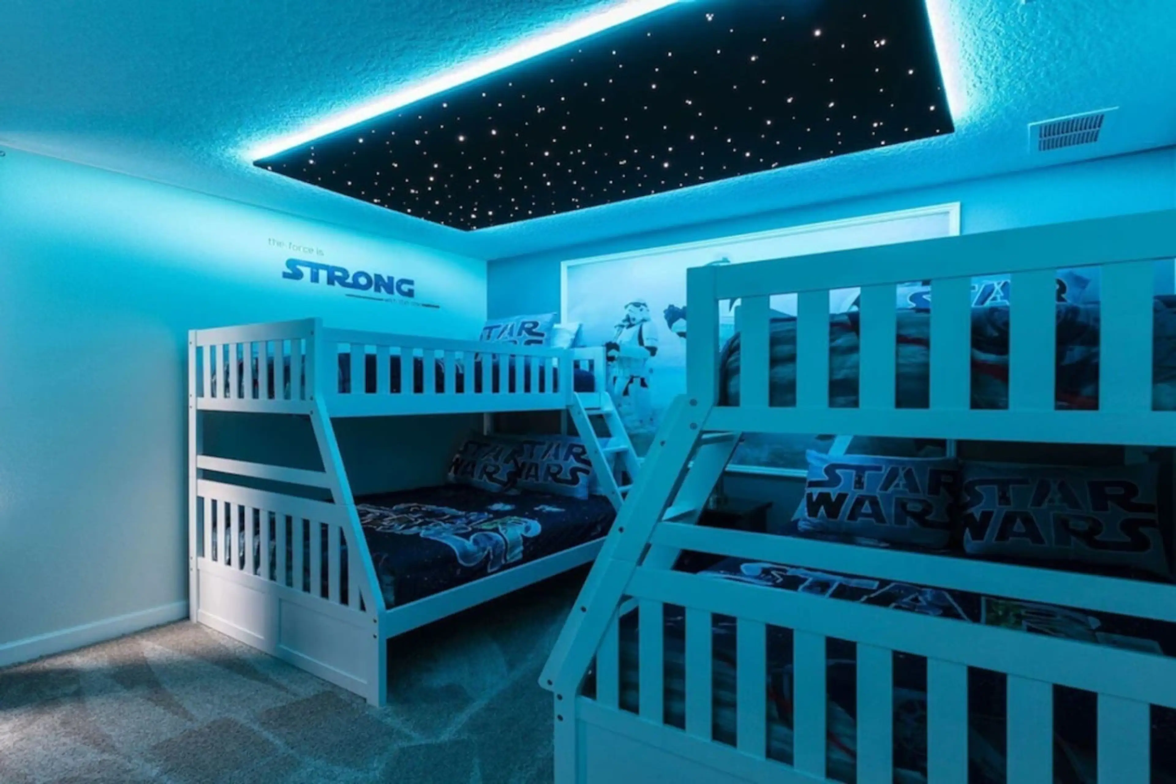 Step into an unforgettable stay at this 8BR Space Adventure Villa near Disney, located in ChampionsGate Resort. Featuring immersive Star Wars, Princess, and Harry Potter–themed bedrooms, this home is designed to spark imagination for all ages. Enjoy the private heated pool and spa, a stunning theate...